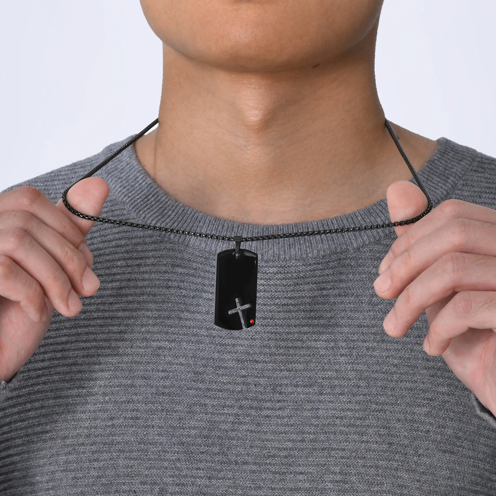 Die Sidecross Herren Kreuzkette wird in kontrollierten Produktionsverfahren gefertigt. Edelstahl und präzise Verarbeitung gewährleisten dauerhafte Farbbeständigkeit und Formstabilität.