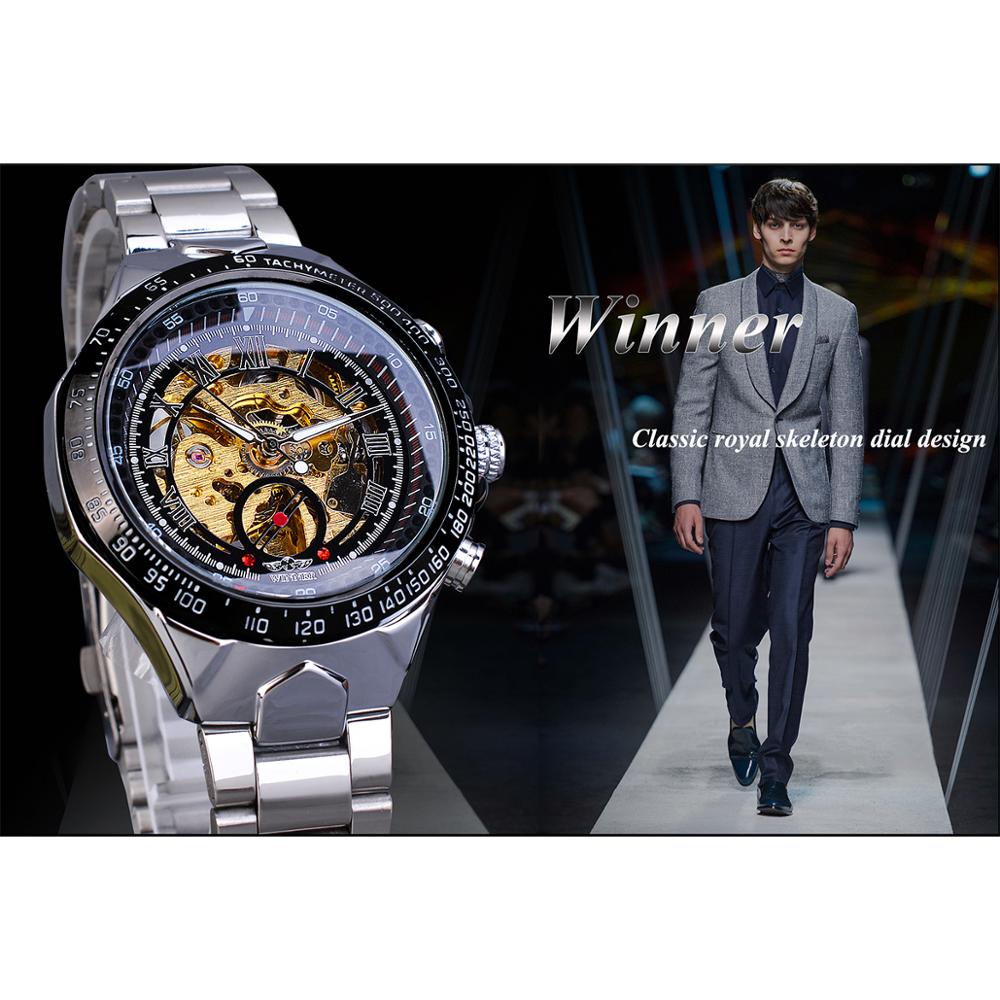 4 Rezensionen für Luxuriöse Edelstahl-Uhr mit Skelett-Zifferblatt, goldenem Uhrwerk und automatischem Aufzug