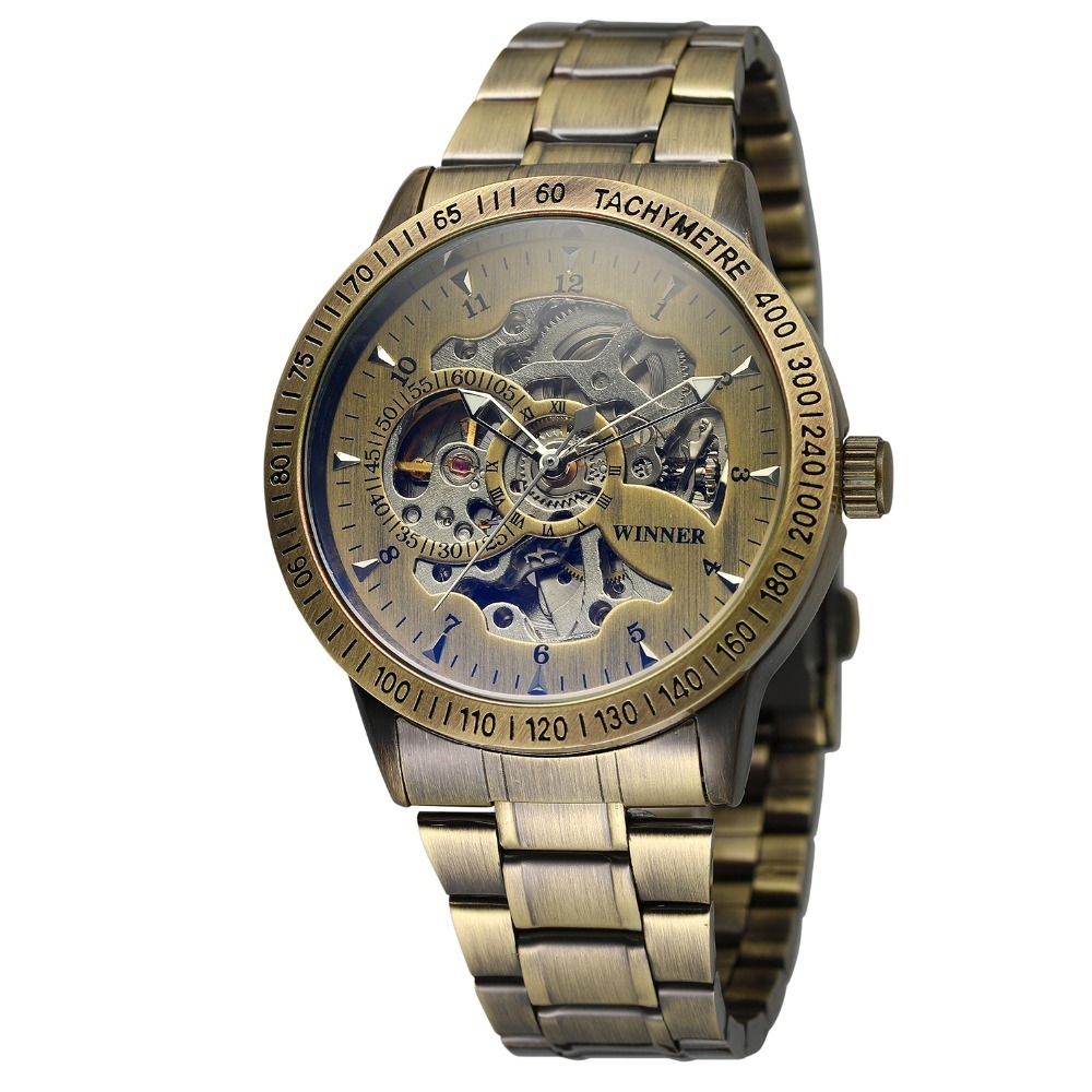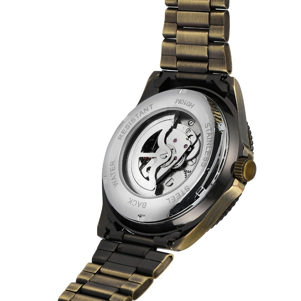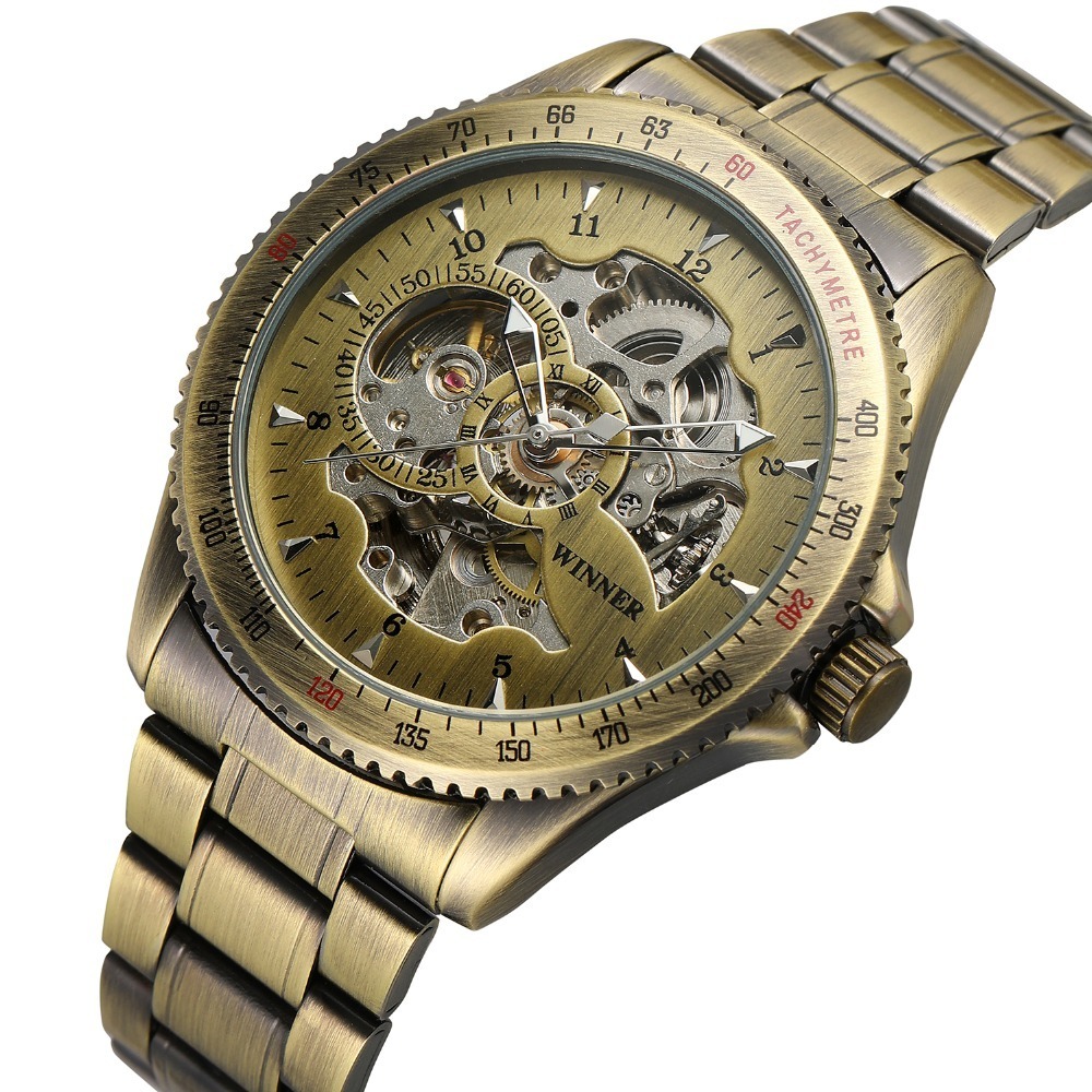 WINNER Vintage Bronze Skeleton Automatic Mechanical Male Wrist steel Watch