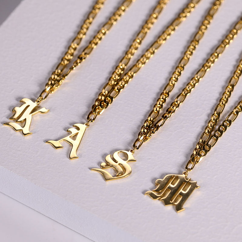 Gold Stainless Steel Pendant Vintage Initial Letter Necklace