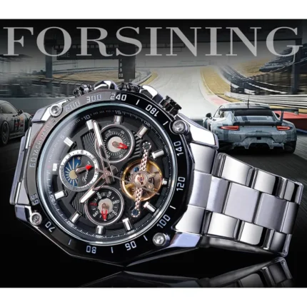 Forsining Automatikuhr Herren Automatik Chronograph Moonphase Edelstahl