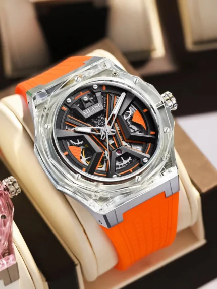 AOKULASIC Herrenuhr Automatik mit Leuchtdial & Regenbogenlünette – Edelstahl oder Leder