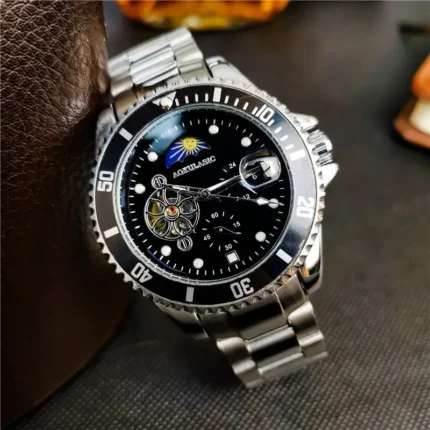 AOKULASIC Automatik Herrenuhr Skelett Mondphase 43mm Edelstahl wasserabweisend