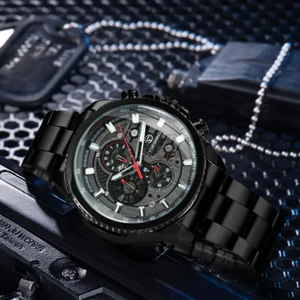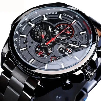 Forsining Herren Chronograph Automatikuhr Skelett 42mm 3 BAR FS073 Edelstahl