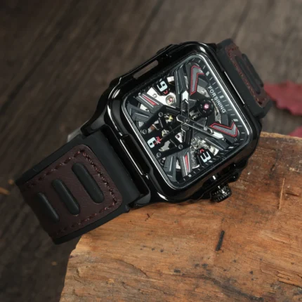 SEWOR Luxus Automatik Herrenuhr Skelett Mondphase Wasserabweisend Lederarmband Leuchtzeiger