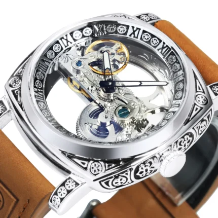 Exklusive Skelettuhr Automatikwerk 40mm Edelstahl Herrenuhr mit Lederarmband