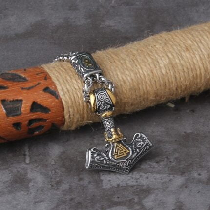 Norse Scandinavian Vienna Viking Valknut Necklace Men Vintage Stainless Steel Mjolnir Thor’s Hammer Pendant Necklace Jewelry