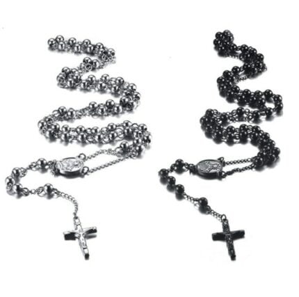 Gold Color Fashion Cross Rosary Pendant Necklace Jesus Beads Cross Hip Hop Necklace