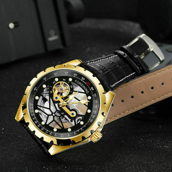 Automatic Forsining Creative Leather Transparent Skeleton Men’s Watches