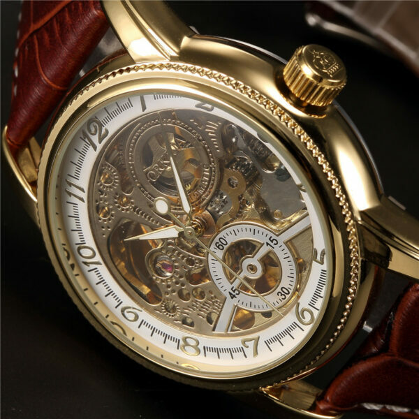 Men’s Luxury Golden Skeleton Mechanical Automatic Leather Strap watch