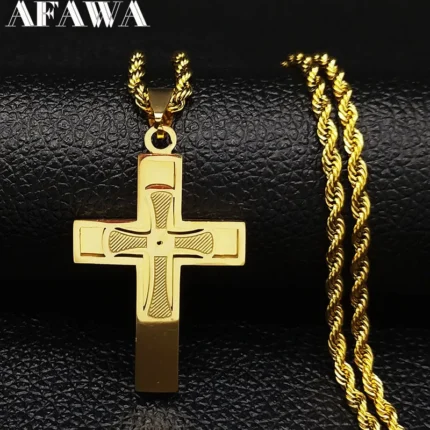 Halskette Vergoldete Edelstahl Kreuzanhänger 60cm 50mm