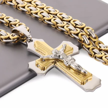 Halskette Herren Edelstahl Byzantinisch 6mm Jesus Kreuz Anhänger 55-70cm