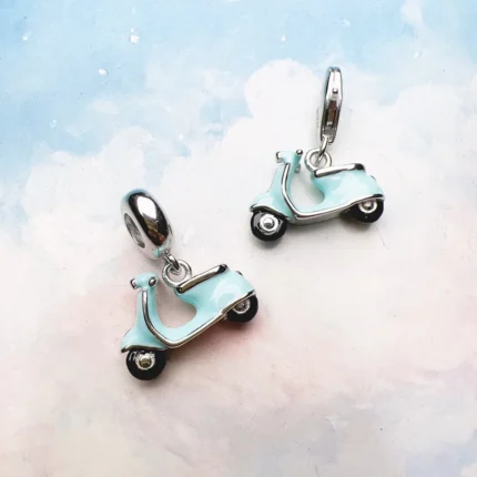 Charm Anhänger für Armband Motorroller hellblau Emaille silber Karabiner