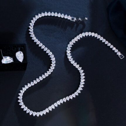 CWWZircons Gorgeous Cubic Zirconia White Gold Color Round Wedding Bridal Necklace Earrings Party Jewelry Set for Brides T567