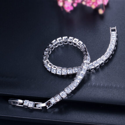 CWWZircons Brand Square 3mm Cubic Zirconia Tennis Bracelets for Woman White Gold Color Princess Cut CZ Wedding Jewelry CB169
