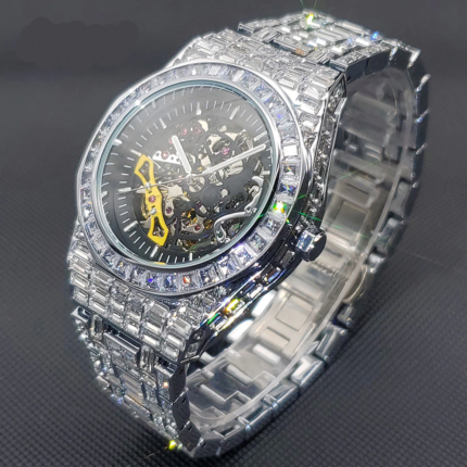 Mechanische Herrenuhr Luxus Zirkon Skelett Uhr Wasserdichte Automatikuhr Iced