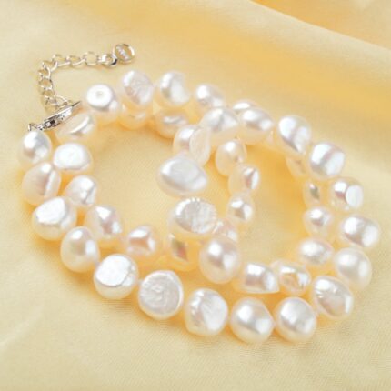 ASHIQI Real White Natural Baroque pearl Jewelry Sets Real Freshwater pearl Necklace Bracelet for women
